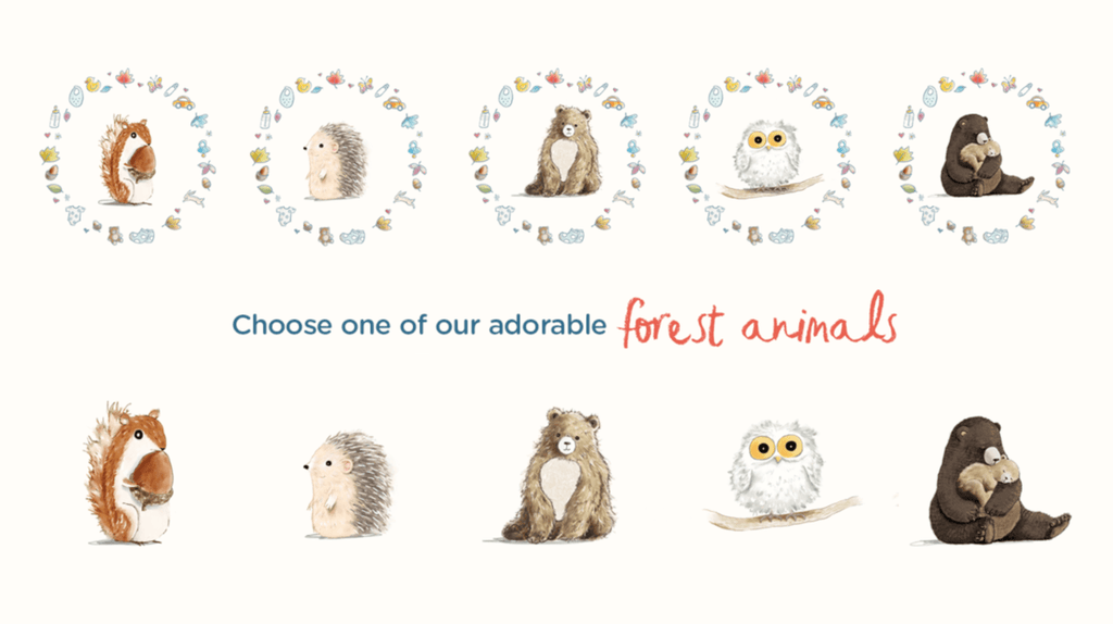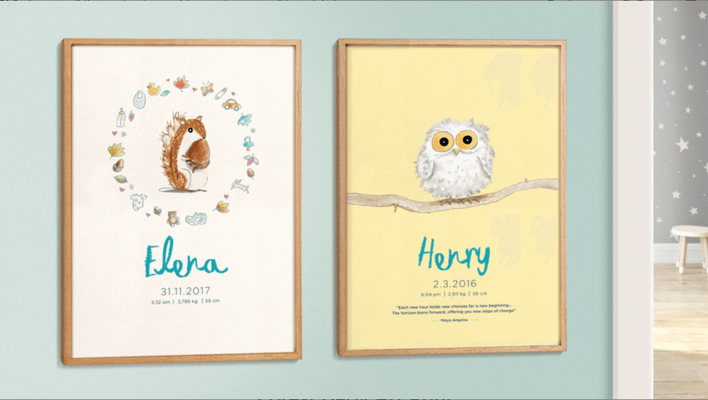A personalised art print featuring ten adorable forest baby illustrations. Add a special quote as well as birth data to create a truly unique newborn gift.